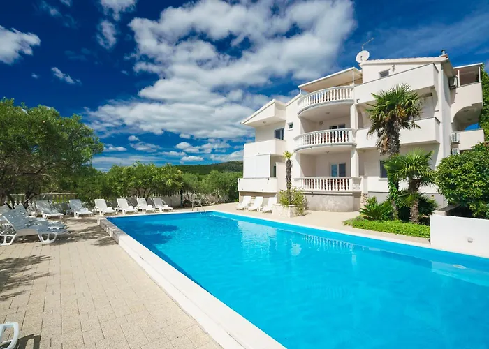 Apartments House Rina - 2 Vodice, som vetter mot trädgården, ligger ungefär 18 minuters gångavstånd från plaz Bristak i Vodice. Wi Fi och en parkering finns också i denna strandnära lägenhet.